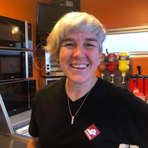 Van gewaardeerde schooljuf tot supervriendelijke frituriste. Staat klaar voor inpak en bediening. Steeds paraat met een innemende glimlach en voor een babbel.